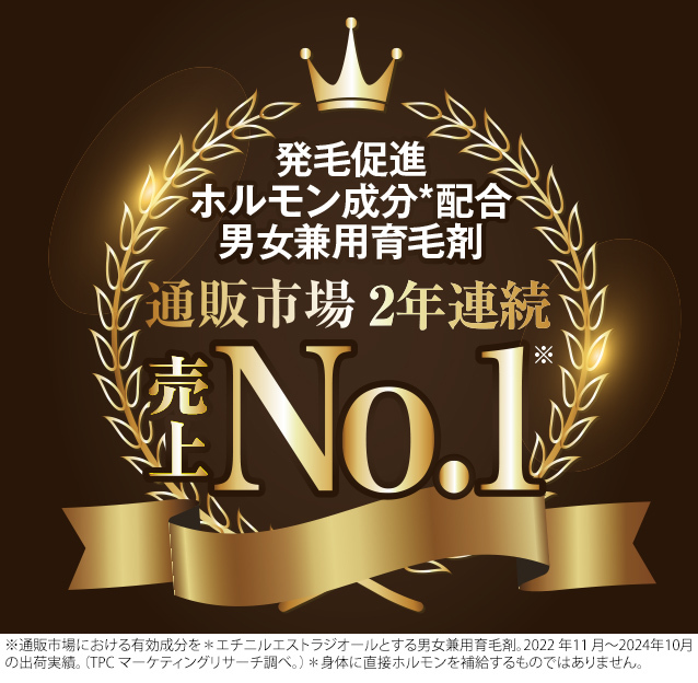 ※1 ホルモシリーズの累計販売数(ホルモプレミアムヘアグロウエッセンス、ホルモプレミアム栄養サプリメント、ホルモプレミアムアイラッシュ&ブロウセラム、ホルモプレミアムヘアメイク&グロウスプレー黒、ホルモプレミアムヘアメイク&グロウスプレー茶)2025年3月末時点実績 自社調べ。※2 エチニルエストラジオールのこと。身体に直接ホルモンを補給するものではありません